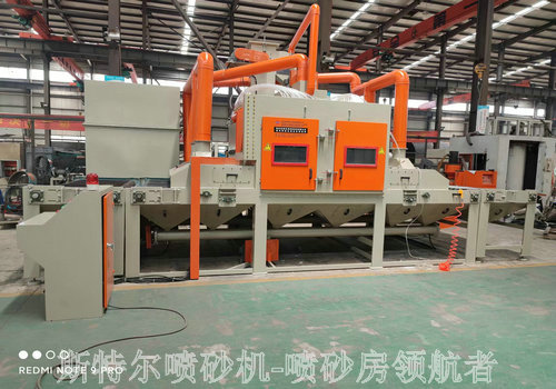 為保時來設計生產制造的自動輸送式噴砂機交付使用。該款自動噴砂機設計新穎,自動化程度比較高:采用雙向輸送式機構設計,噴砂槍采用24組噴砂機專用噴砂槍配套,能夠實現無死角噴砂處理,該款噴砂設備在設計時配專用濾筒式除塵,滿足環保要求及過濾風量,在噴砂機工作期間基本可以滿足使用中無粉塵泄露,在使用中保證除塵器風機無粉塵排放,滿足噴砂機的環保要求,達到客戶使用設備的初衷,在使用噴砂機時應定期檢查噴砂機的濾芯是否堵塞或者松動,噴砂機除塵器的脈沖是否正常啟動,是否按照節拍運行,因為這個直接決定噴砂機的除塵效果好與壞,也保證噴砂機在使用中對環境的影響,這個自動噴砂機應用的產品范圍比較廣泛如:平板類任何產品任何材質的產品都可以進入進行噴砂加工和處理,鋼板,鋁板,玻璃,不銹鋼板等產品,一些異性的結構件只要工作倉可以進入就都可以進行噴砂機操作使用,無非就是砂料的選擇和對產品表面的要求工藝決定,并且可以根據要求定制噴砂機的長度和寬度高度,重型工件在選擇噴砂機時應及時與我們工程師溝通是否加固等要求。